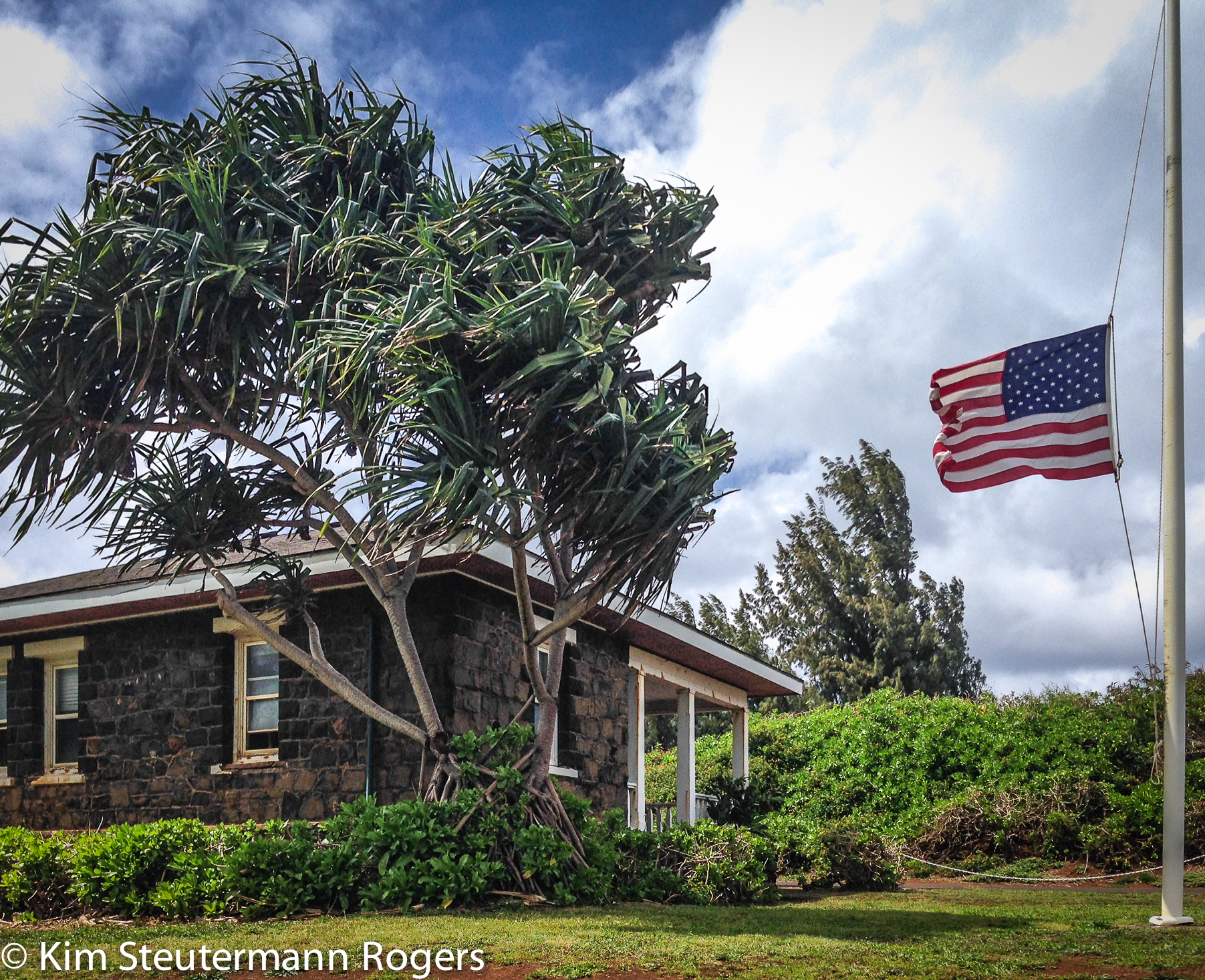 One of my duties as a park ranger at Kilauea Point National Wildlife Refuge is to raise and lower the flag outside the head lighthouse keeper’s home that now serves as our offices. Honestly, sometimes, I forget. Like the proverbial snake that my mother threatened would strike my father when he couldn’t find something right in front of his face, I walk by that flag pole, a mere half-dozen steps off the sidewalk, multiple times a day and don’t see it. No one’s ever asked me about the flag, so I assumed others reacted to it the same way I did.